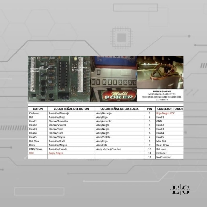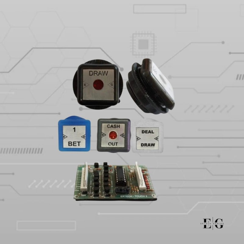 Las botoneras táctiles Ertech Gaming han sido desarrolladas con tecnología de alta precisión para ofrecer una experiencia de juego superior. Su estructura está fabricada en materiales resistentes al desgaste y los impactos, garantizando un funcionamiento confiable incluso en entornos de uso continuo. Se utiliza en maquinas de casinos “póker”